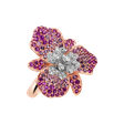 Přívěsek z 18kt růžového a bílého zlata s diamanty a safírem pink je jako duha, která se objevuje po bouři. Jeho barvy a třpyt jsou oslavou naděje a úspěchu. Perfektní doplněk pro ty, kdo hledají v životě barvu a inspiraci. Šperk je součástí kolekce Flowers.