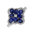 Elegantní prsten z 18kt bílého zlata s diamanty a safírem je jako květ rozvíjející se pod jarním sluncem. Jeho jemná elegance a třpytivý diamantový věnec jsou pohádkovou kombinací luxusu a romantiky. Šperk je součástí kolekce Mirage.