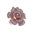 Elegantní prsten s 18kt růžovým zlatem zdobené diamanty a safírem pink. Dokonalý doplněk pro každou příležitost k úspěchu. Šperk je součástí kolekce Flowers.
