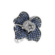 Moderní eleganci a trvalou hodnotu spojuje tento prsten z 18kt bílého a černého zlata s diamanty a safírem, který je dokonalým doplňkem k vyjadřování nenucené krásy. Šperk je součástí kolekce Flowers.