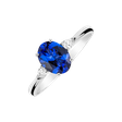 Klasický design zásnubního prstenu v moderním provedení. Oválný centrální tanzanit je po stranách zdoben dvěma menšími diamanty, což vypadá opravdu úchvatně.