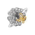 Jemný a dokonale vyvážený prsten ze 14kt bílého a žlutého zlata s diamanty slibuje poselství navždy trvající krásy i spirituální harmonie. Šperk je součástí kolekce Flowers.