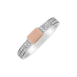 Krása a síla se snoubí v tomto prstenu z 14kt bílého a růžového zlata s diamanty. Jeho oslnivý design je metaforou pro nezlomného ducha a ambice. Ideální odměna pro všechny, kdo si cení luxusu zlata a odvahy. Šperk je součástí kolekce Charming.
