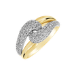 Nádherný prsten z 18kt žlutého a bílého zlata osvětlený září diamantů je dokonalým vyjádřením lásky a závazku. Jeho elegantní design je ideální pro zásnubní nebo svatební příležitost. Šperk je součástí kolekce Essential.
