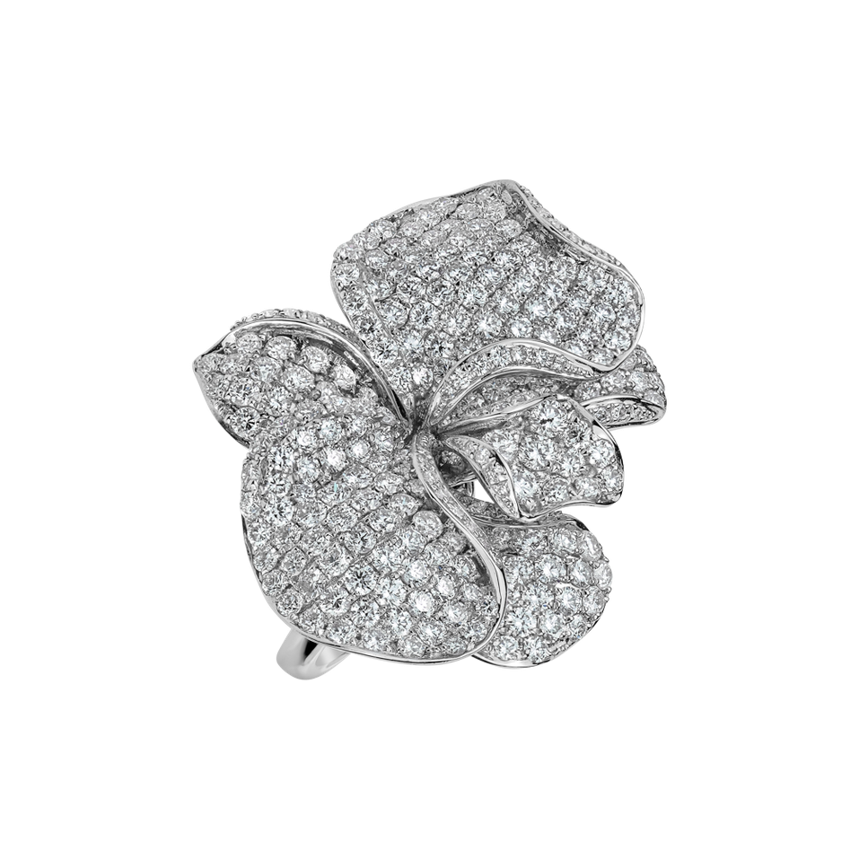 Velkolepá květinová kompozice luxusního prstenu Charming Orchid napovídá, že jste se právě setkali s mimořádným šperkem. Bílé zlato vytvarované do romantického květu je poseté třpytivými brilianty, které celý šperk zahalují do zářivého závoje světelných odlesků. Tento prsten neunikne ničí pozornosti.