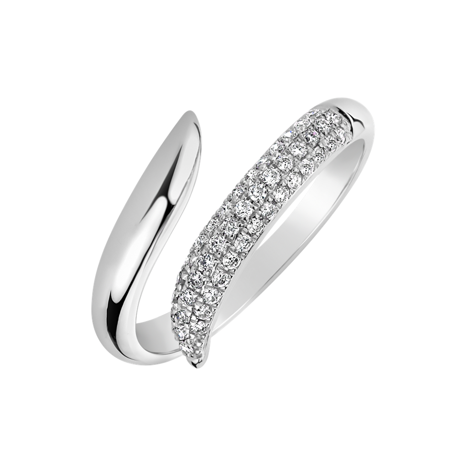 Tento prsten z 14kt bílého zlata zdobí krásné diamanty. Je dokonalým doplňkem pro každého, kdo má rád elegance a šmrnc. Jeho jedinečný design a nádherné diamanty dodávají šperku zářivou eleganci. Bude skvělým doplňkem vašeho outfitu a přinese vám spoustu komplimentů. Šperk je součástí kolekce Essential.