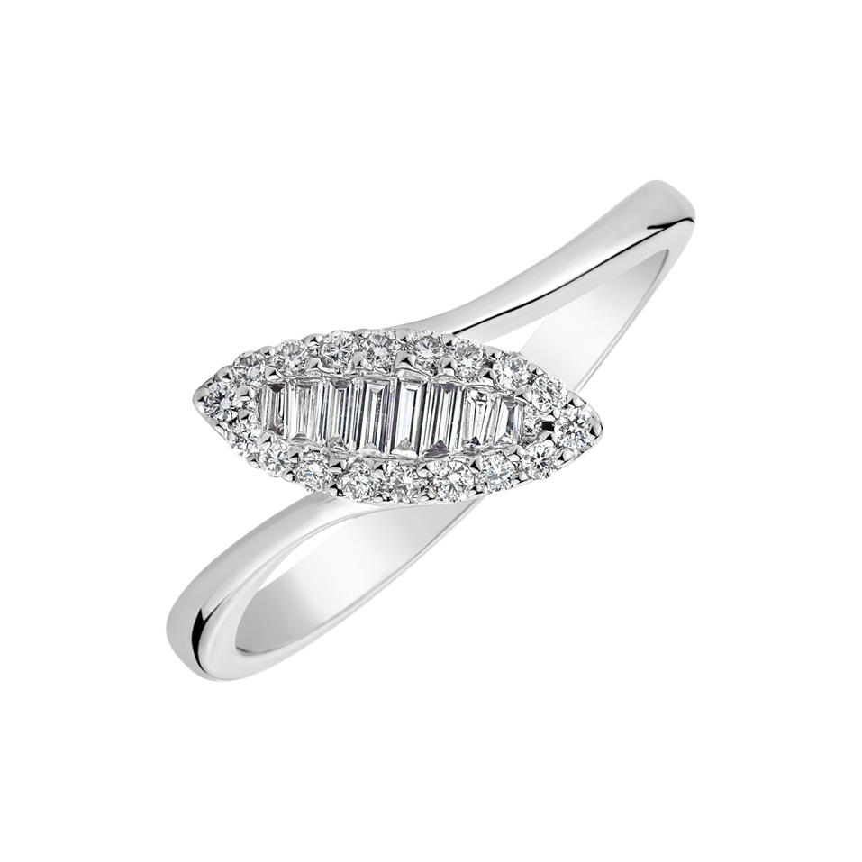 Prsten 18kt bílého zlata s diamanty, který září svou jedinečnou elegancí. Každý detail tohoto prstenu byl pečlivě promyšlen, ať už jde o design nebo kvalitu použitých materiálů. S tímto prstenem budete vždy vypadat noblesně a diamanty dodají vašemu vzhledu nádech luxusu. Šperk je součástí kolekce Glamour Edge.