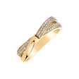 Tento prsten z 14kt žlutého zlata s diamanty je dokonalým vyjádřením elegance a šarmu. Jeho křivky a jiskřivé diamanty vás pozvou k oslavě lásky a společných chvil plných radosti. Jeho nadčasový design zdůrazňuje jedinečnost každého okamžiku stráveného společně, ať už jde o romantický závazek, výročí nebo jinou významnou událost. Šperk je součástí kolekce Essential.