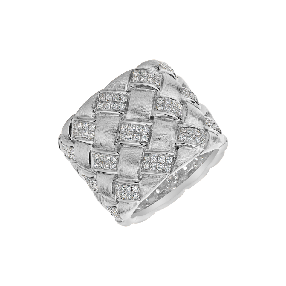 Elegantní prsten s 18kt bílým zlatem a diamanty. Dokonalý doplněk pro každou příležitost k úspěchu. Šperk je součástí kolekce Charming.