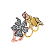 Prsten z 14kt růžového, bílého a žlutého zlata s diamanty je jako jiskra věčného plamene - plný energie a síly. Tento klenot je určen pro ty, kteří hledají v životě něco neobyčejného. Šperk je součástí kolekce Animals.