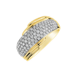 Prsten z 18kt žlutého a bílého zlata osvětlený září diamantů je uměleckým dílem. Jeho jemný a elegantní design vyzařuje luxus a exkluzivitu, ideální pro vyjádření jedinečného stylu. Šperk je součástí kolekce Essential.