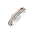 Tento prsten z 14kt bílého a růžového zlata s diamanty je skvělým doplňkem každého společenského večera. Plesové šaty či malé černé - nositelka v nich bude s tímto šperkem zářit jako hvězda na nebi. Šperk je součástí kolekce Charming.