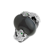 Každý váš pohyb bude nyní doprovázen okouzlujícím zábleskem diamantů, měsíčního kamene šedého a granátu green pečlivě vsazených do nádherného prstenu z 18kt černého zlata. Tento klenot je symbolem elegance a jedinečnosti. Šperk je součástí kolekce Animals.