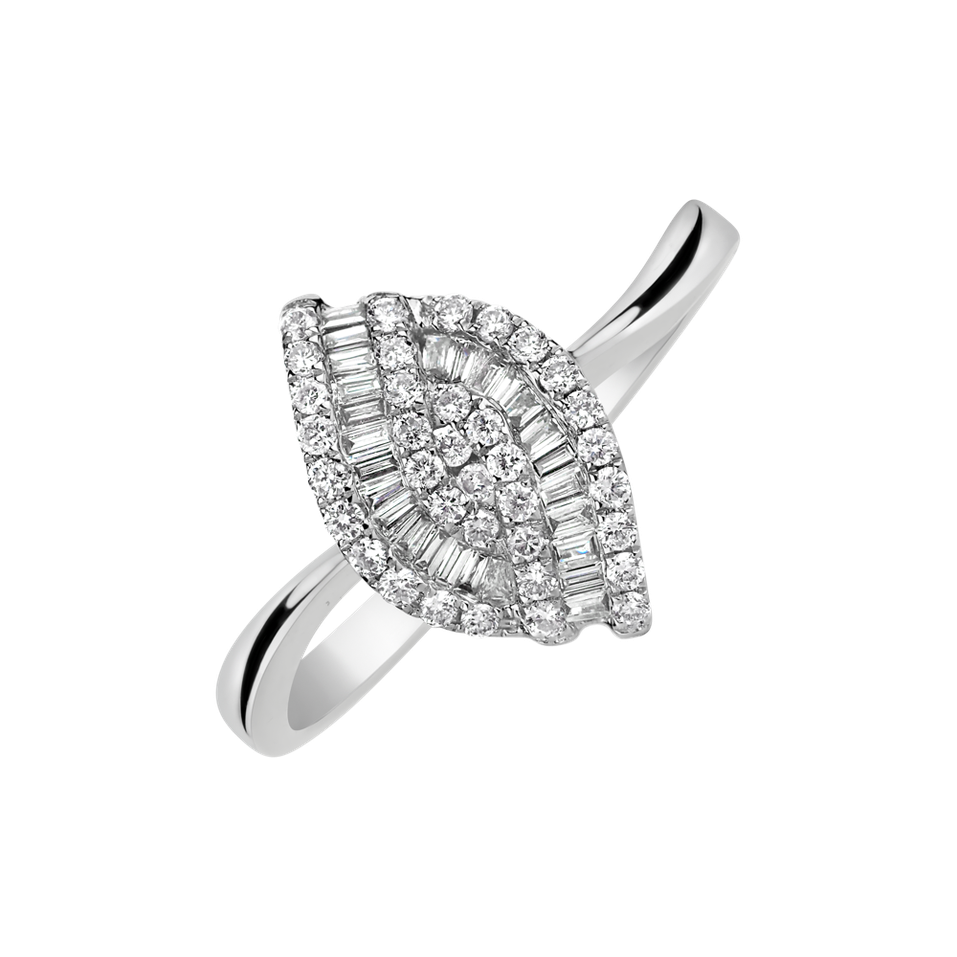 Tento prsten z 18kt bílého zlata s diamanty je dokonalou ukázkou, že pravá krása může být jednoduchá a zároveň výrazná. Stačí jen inspirace a pečlivá práce. Šperk je součástí kolekce Glamour Edge.
