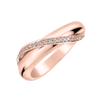 Prsten 14kt růžového zlata s diamanty je jako spojení dvou světů - světa precizní výroby a světa romantické krásy. Jeho třpytivé diamanty jsou jako most mezi klasickou elegancí a moderním nádechem. Šperk je součástí kolekce Essential.