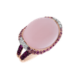 Objevte svou lásku k jemnému umění s tímto 18kt růžovým zlatým prstenem s diamantem, růženínem a safírem pink, který přijímá a odráží barevné světlo s nepředstavitelným třpytem. Šperk je součástí kolekce Blossoms.