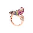 Barevný papoušek z exotických krajů usedl na noblesní prsten Exotic Parrot z ateliéru ALO diamonds. Pražští klenotníci zlatého papouška ozdobili zářivě barevnými safíry, granáty a třpytivými diamanty.
