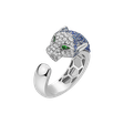 Elegance není nikdy přehlížena, když nosíte tento prsten z 18kt bílého zlata s diamantem, safírem a granátem green, který je dokonalým důkazem, že skutečná krása může být jednoduchá a zářící zároveň. Šperk je součástí kolekce Animals.
