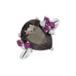 Tento prsten z 18kt bílého zlata s diamantem, safírem pink a smoky quartzem je ztělesněním něžnosti a elegance - nádherný doplněk, který dodává vašemu outfitu punc luxusu a sofistikovanosti. Šperk je součástí kolekce Fantasy.