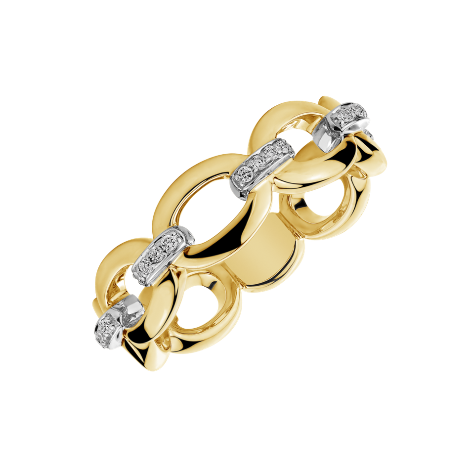 Elegantní prsten z 14kt žlutého a bílého zlata s diamanty je jako hlas věčného květu, přinášející pohádkovou krásu a sílu. Tento klenot je určen pro ty, kdo si cení elegance a tajemství přírody. Šperk je součástí kolekce Essential.