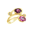 Prsten s diamanty, topazem a rhodolitem Magic Flower