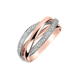 Diamantový prsten z 14kt růžového a bílého zlata je jako symfonie světla a elegance. Jeho třpytivé kameny jsou jako jemné noty, které hrají píseň nekonečné krásy a úcty. Šperk je součástí kolekce Essential.