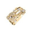 Tento prsten z 14kt žlutého zlata s diamanty je mistrovským dílem jemného umění. Jeho čisté linie a oslnivý třpyt jsou jako hladina klidného jezera pod hvězdným nebem. Šperk je součástí kolekce Flowers.