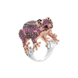 Tento nádherný prsten, vyrobený z 18kt bílého, růžového a černého zlata, je skvostným dílem šperkařského umění. Jeho hnědý diamant, safír pink a granát green vytvářejí jedinečnou kombinaci barev a třpytu. Tento šperk je symbolem luxusu a vkusu. Šperk je součástí kolekce Animals.