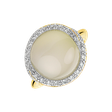 Mějte blízko svého srdce tento prsten z 18kt žlutého zlata s diamanty a měsíčním kamenem bílým, který slibuje zachytit každý paprsek světla a radost z každého báječného dne. Šperk je součástí kolekce Blossoms.