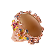 Tento prsten z 18kt růžového zlata s diamanty, měsíčním kamenem oranžovým, rubínem a safírem multicolor je mistrovským kouskem, který odráží vizi a odhodlání. Jeho zářivý design je oslavou úspěchů a výjimečnosti. Prsten je zdoben krásnými diamanty a drahokamy, které dodávají tomuto klenotu nesmírnou eleganci a šarm. Šperk je součástí kolekce Flowers.