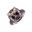 Elegantní prsten s 18kt bílým zlatem zdobený diamantem, morganitem a safírem pink. Dokonalý doplněk pro každou příležitost k úspěchu. Šperk je součástí kolekce Fantasy.