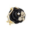 Tento prsten z 18kt žlutého zlata s diamanty a onyxem je jako šperk pro pravou královnu. Jeho jemné křivky a třpytivý drahokamy podtrhnou vaši krásu. Šperk je součástí kolekce Flowers.