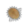 Exkluzivní prsten v 14kt bílém zlatě zdobený diamanty a opálem white, je mistrovským dílem šperkařského umění. Jeho jedinečný design a neobyčejná krása opálu white odhalují skutečnou eleganci. Šperk je součástí kolekce Diana.