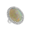 Moderní eleganci a trvalou hodnotu spojuje tento prsten z 14kt bílého zlata s diamanty a opálem white. Šperk je součástí kolekce Blossoms.