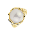 Elegantní prsten s 14kt žlutým zlatem, diamanty a mořskou bílou perlou. Dokonalý doplněk pro každou příležitost k úspěchu. Šperk je součástí kolekce Ocean & River.