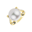 Perly ve vaší šperkovnici - čistota, nadčasovost a krása. Nádherný prsten 18kt žlutého zlata s diamanty a mořskou bílou perlou zaujme svým jedinečným designem a přidá vašemu vzhledu nádech romantiky. Šperk je součástí kolekce Ocean & River.