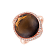 Prsten 18kt růžové zlato s diamanty a cogniak quartzem je jako poklad ztraceného království. Jeho třpytivé diamanty a vzácný cogniak quartz symbolizují luxus, moc a lákavou krásu. Šperk je součástí kolekce Blossoms.