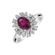 Jemnost a elegance se spojují v tomto 18kt bílém zlatém prstenu s diamanty a rubínem, který slaví každé vaše gesto. Šperk je součástí kolekce Diana.