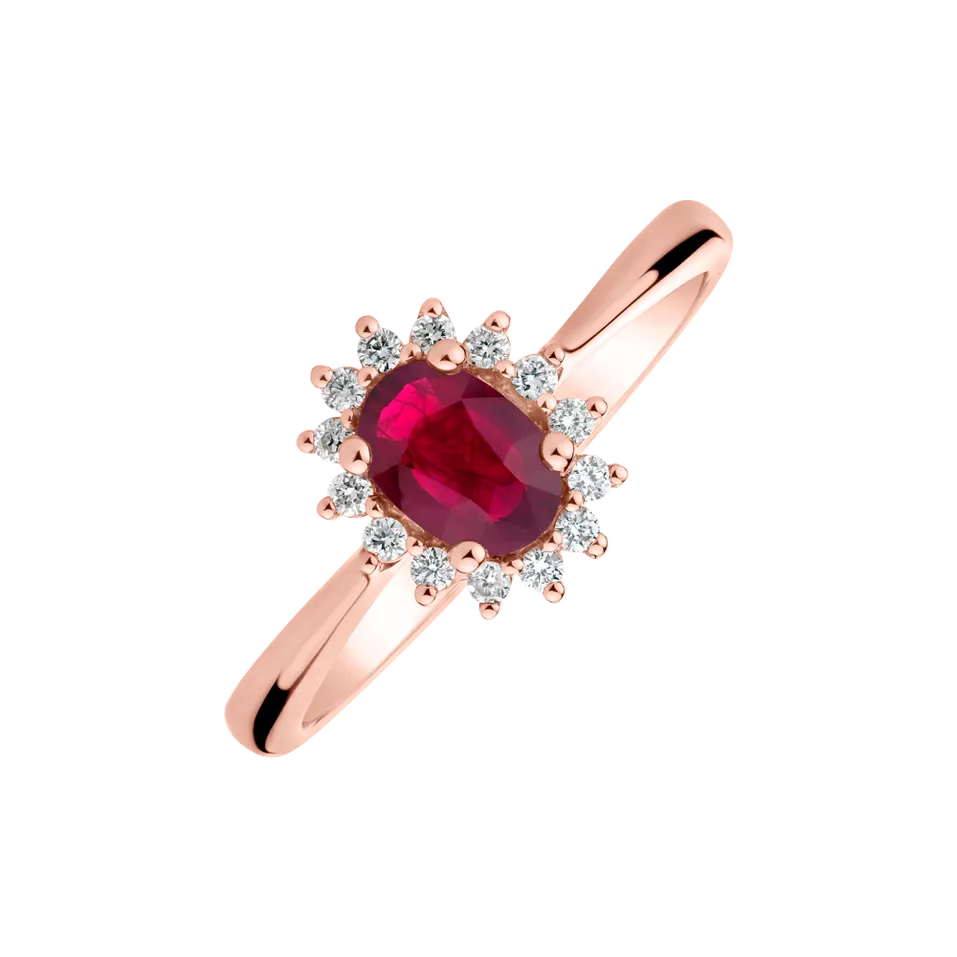 Tento nádherný prsten z 14kt růžového zlata s diamanty a rubínem je kouskem přírody na vašem prstu. Rubín symbolizuje lásku a vášeň, zatímco diamanty dodávají prstenu nádherný lesk a světlo. To je šperk pro ty, kteří hledají šperk s výrazem emocí. Šperk je součástí kolekce Diana.