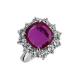 Tento ohromující prsten z bílé platiny s diamanty a rubínem je mistrovským dílem. Jeho pestrobarevný rubín obklopený jasnými diamanty vytváří efekt, který je okouzlující, jedinečný a symbolizuje krásu a rozmanitost života. Šperk je součástí kolekce Royal.