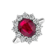 Prsten 14kt bílého zlata s diamanty a rubínem symbolizující vášeň a krásu. Jeho svůdný třpyt je jako oslava lásky a elegance, ideální pro ty, kteří si cení romantiky a luxusu. Šperk je součástí kolekce Diana.