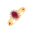 Prsten 14kt žlutého zlata s diamanty a rubínem je jako líbezná píseň zachycující esenci krásy a harmonie. Tento šperk je stvořen pro okamžiky, kdy chcete zazářit jako nikdy předtím. Šperk je součástí kolekce Diana.
