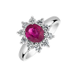 Jemnost a elegance se spojují v tomto 18kt bílém zlatém prstenu s diamanty a rubínem, který slaví každé vaše gesto. Šperk je součástí kolekce Diana.