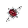 Exkluzivní prsten z 14kt bílého zlata s diamanty a rubínem - pro ty, kteří si chtějí dopřát opravdový klenot plný vznešenosti. Šperk je součástí kolekce Diana.