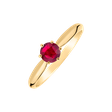 Tento prsten z 14kt žlutého zlata s rubínem je elegantní, vkusný a vyroben s nejvyšší pečlivostí. Jeho nádherná kombinace barev okouzluje všechny milovníky drahokamů, kteří si váží jemných detailů a díla přírody. Šperk je součástí kolekce Classic First.