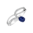 Prsten 18kt bílého zlata s diamanty a safírem, který je jako symfonie světla a elegance. Jeho nádherný design představuje cestu k úspěchu, plnou krásy a jemných tónů. Šperk je součástí kolekce Luxury Classic.