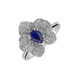 Exkluzivní prsten z 14kt bílého zlata s diamanty a safírem spojuje dokonalost a ohromující třpyt. Nechte svou eleganci zazářit s tímto úchvatným kouskem, který bude vášnivým společníkem na vaší cestě za luxusem a úspěchem. Šperk je součástí kolekce Flowers.