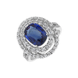 Elegantní prsten s 18kt bílým zlatem a diamanty a safírem. Dokonalý doplněk pro každou příležitost k úspěchu. Šperk je součástí kolekce Luxury Classic.