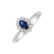 Tento nádherný prsten z 14kt bílého zlata s diamanty a safírem je elegantním doplňkem pro každou příležitost. Safír symbolizuje moudrost a věrnost, a diamanty dodávají prstenu nádherný lesk a světlo. To je šperk pro ty, kteří hledají eleganci a výjimečnost. Šperk je součástí kolekce Diana.