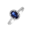 Tento prsten z 14kt bílého zlata s diamanty a safírem je dokonalým kouskem umění. Jeho design je promyšlený a tak nesmírně elegantní. Diamanty a safír na tomto prstenu tvoří třpytivé světelné hrátky, které okouzlí každého, kdo se na ně podívá. Šperk je součástí kolekce Diana.